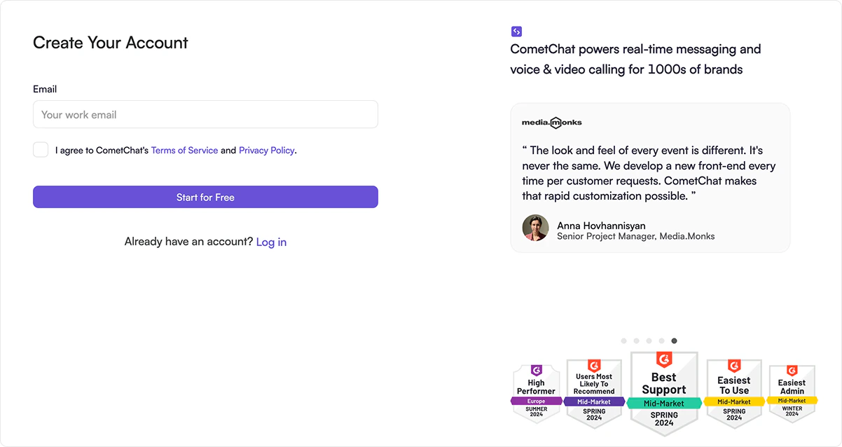 • When a new user signs up in your system, create the corresponding user’s entry with CometChat using APIs.