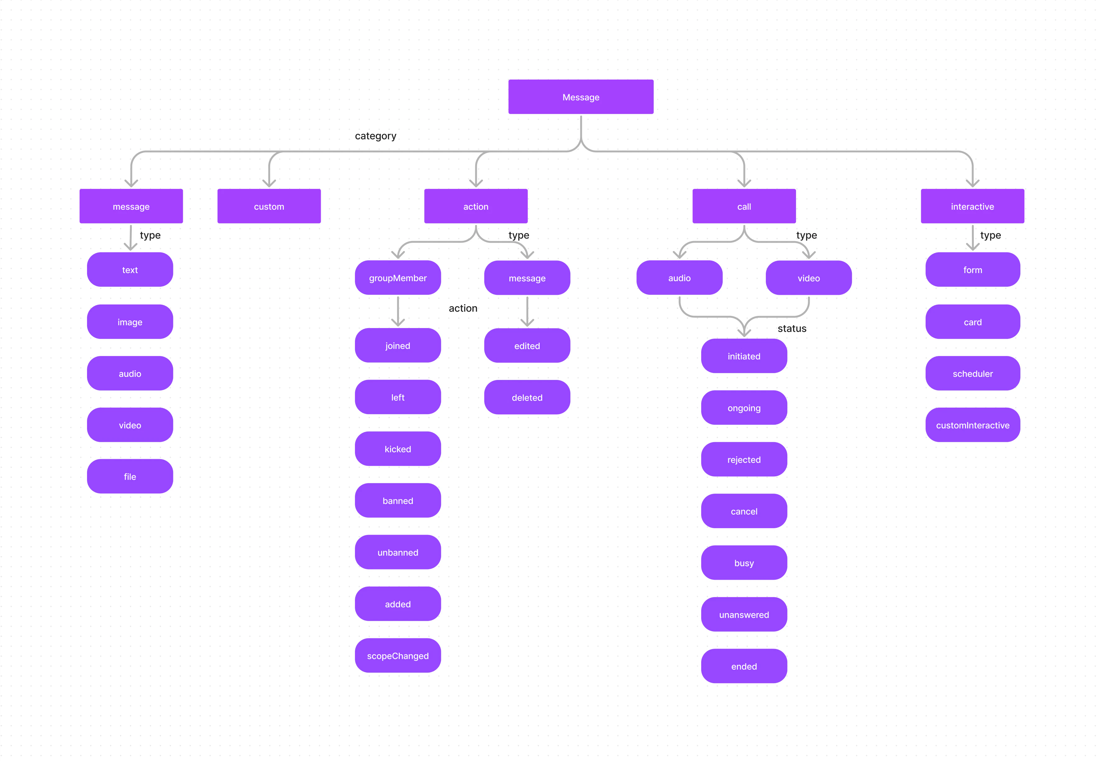 Messages with the categorycall are calling-related messages. These can belong to either one of the 2 types: