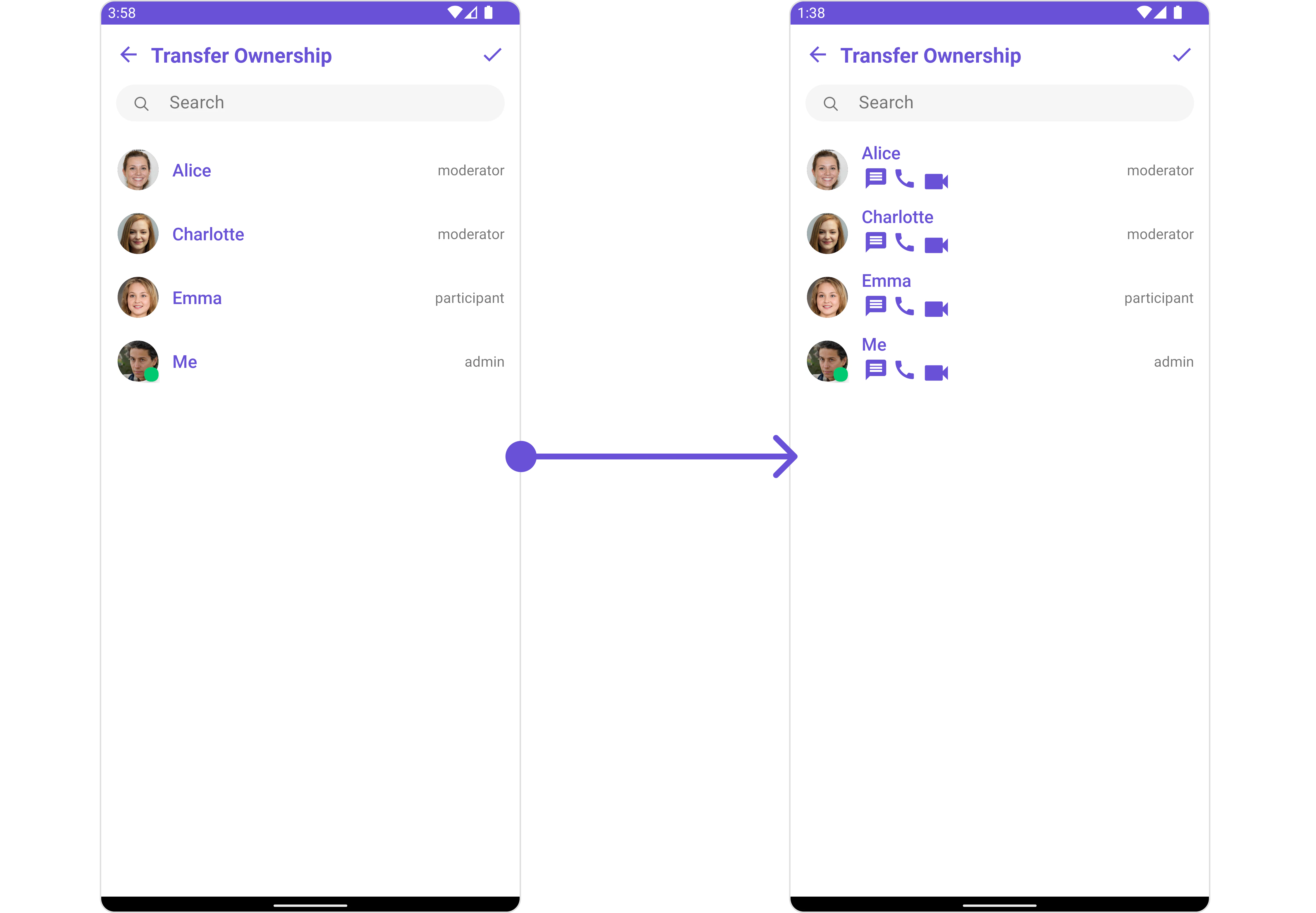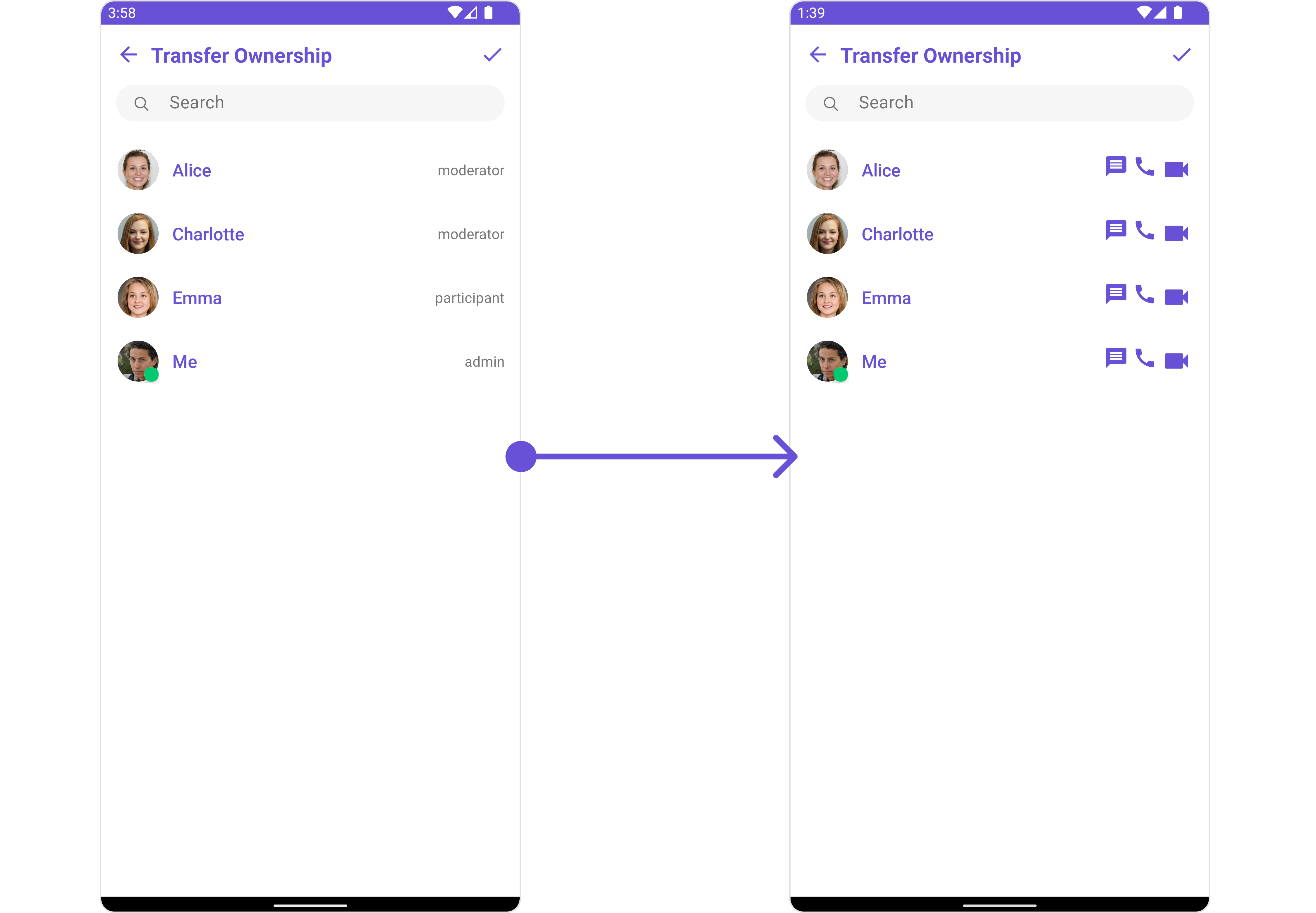 CometChatTransferOwnership, as a composed of the CometChatGroupMembers, offers flexible integration options, allowing it to be launched directly via button clicks or any user-triggered action. Additionally, it seamlessly integrates into activity and Fragment. With transfer ownership, users gain access to a wide range of parameters and methods for effortless customization of its user interface.