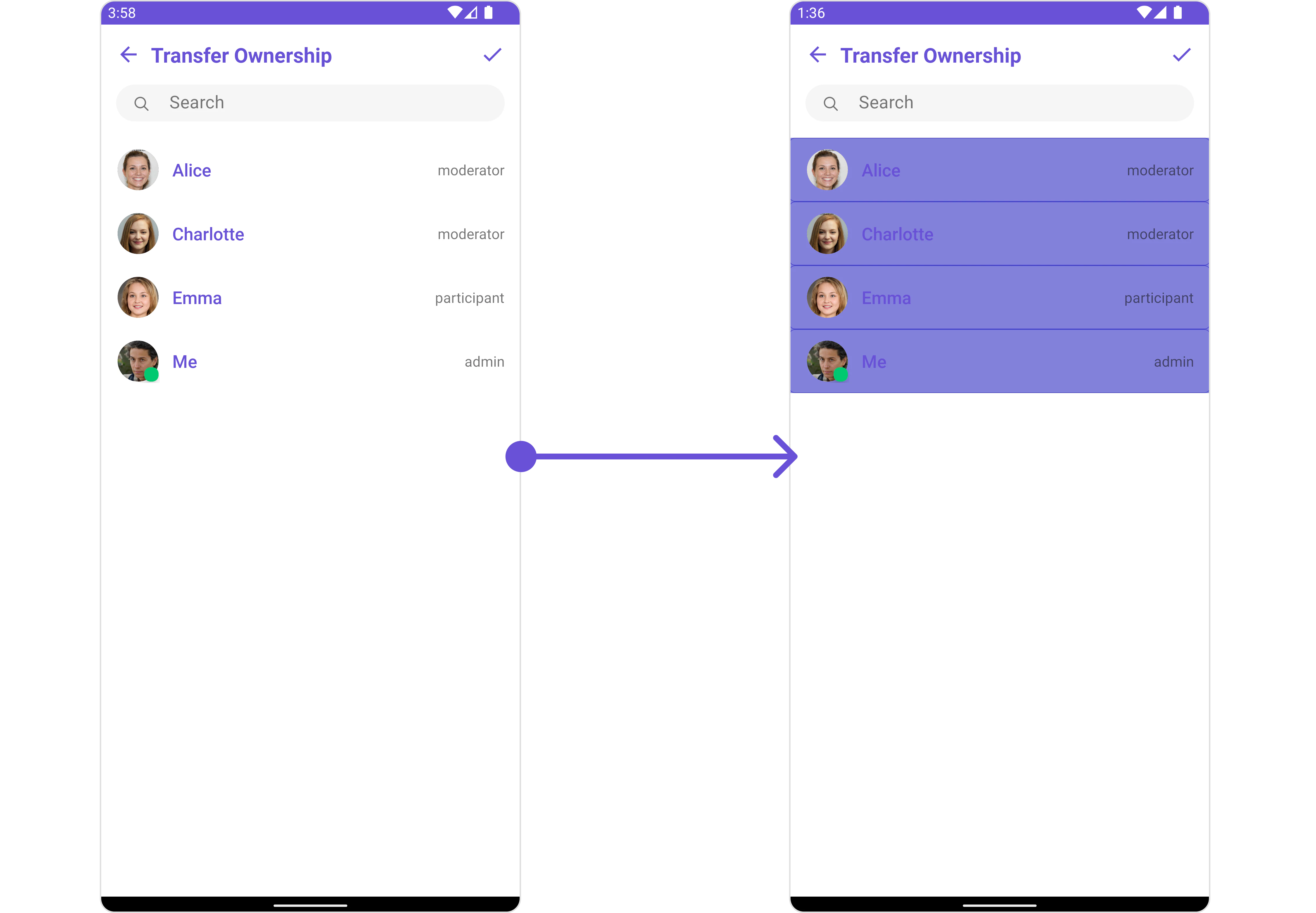 To fit your app’s design requirements, you can customize the appearance of the Transfer Ownership component. We provide exposed methods that allow you to modify the experience and behavior according to your specific needs.Style