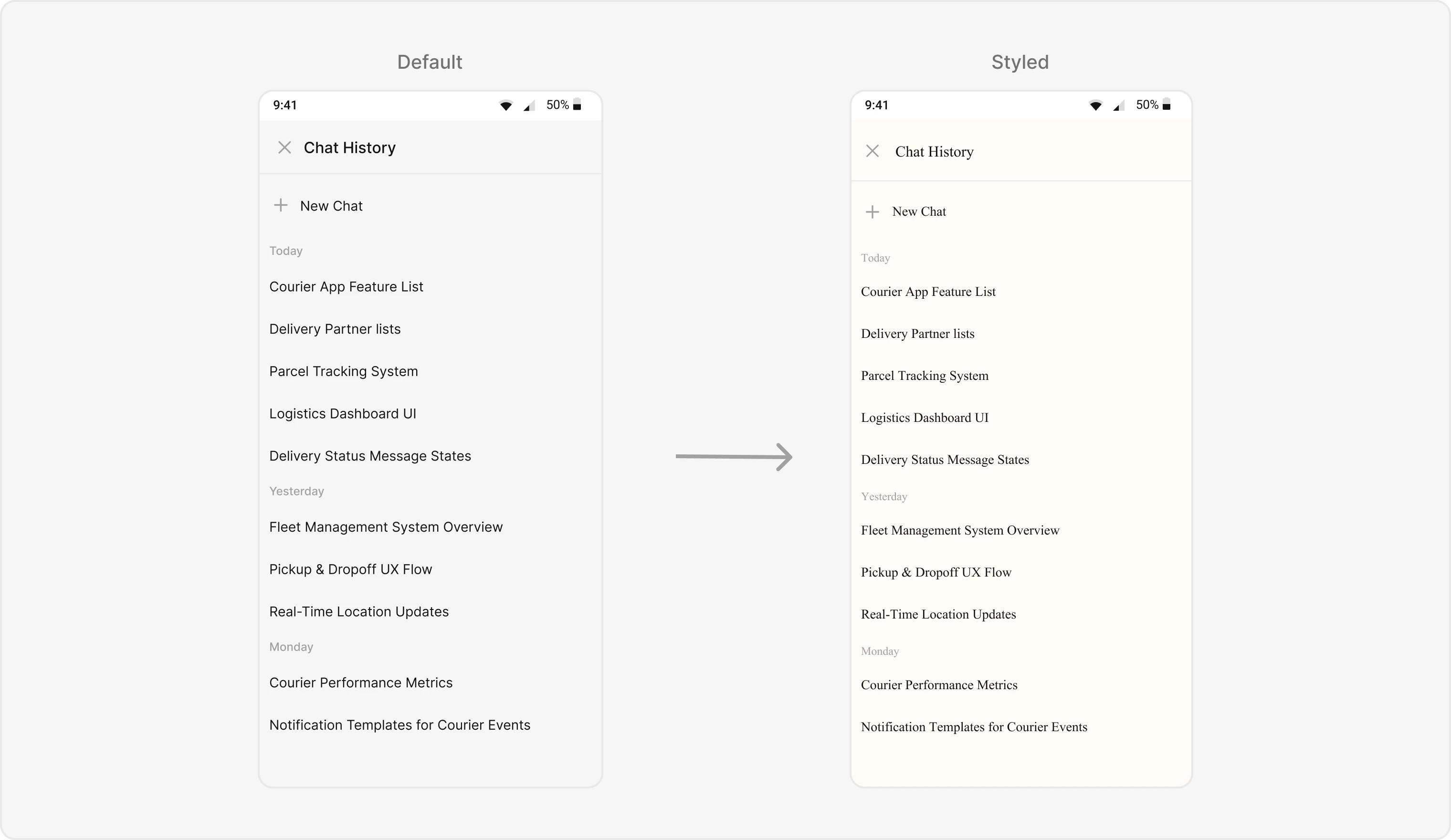 newChaTitleStyle | TextStyle? | Style of new chat title |