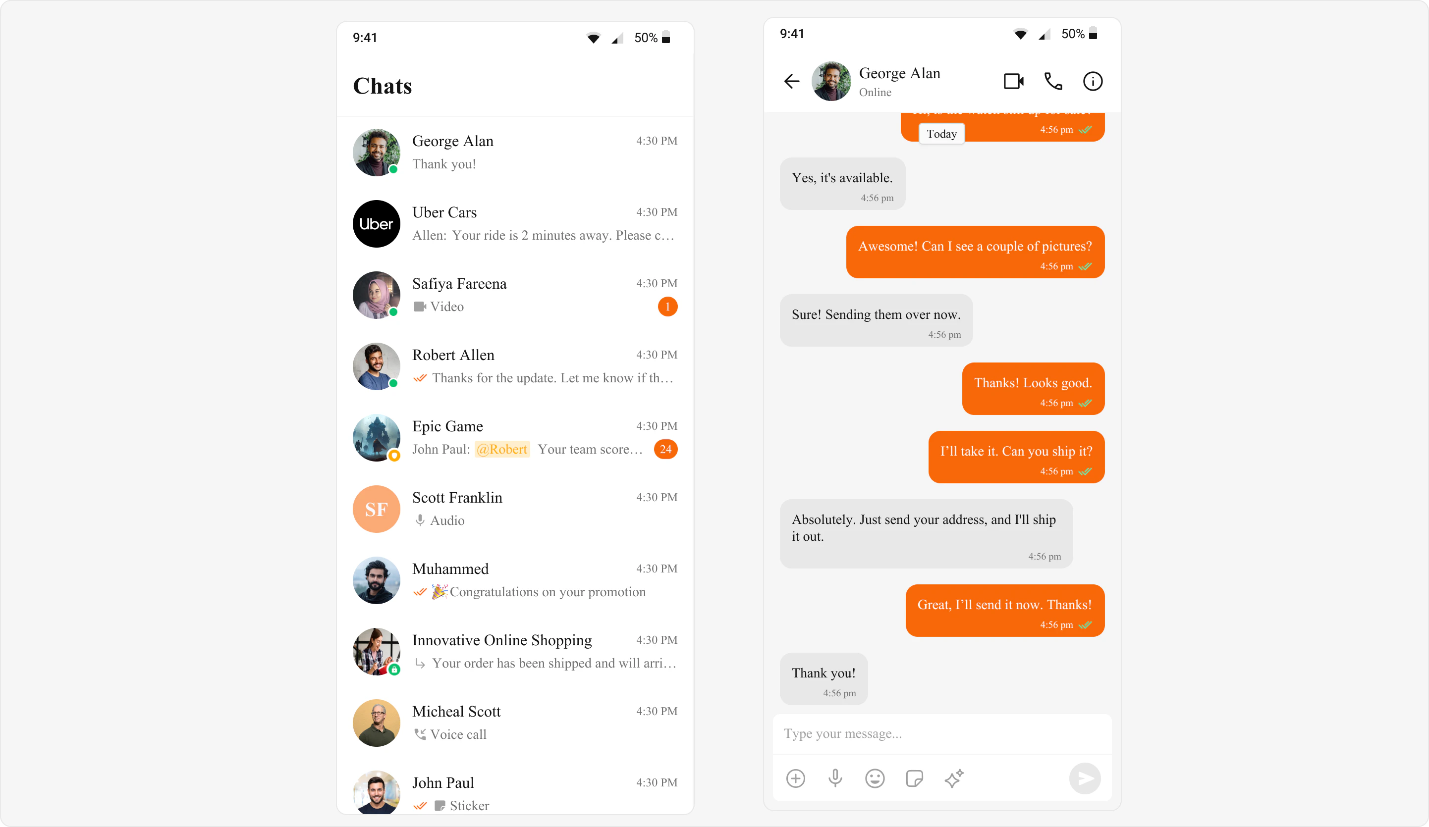 Theming controls the look and feel of the chat UI — colors, fonts, and spacing — through Flutter’s ThemeExtension system.