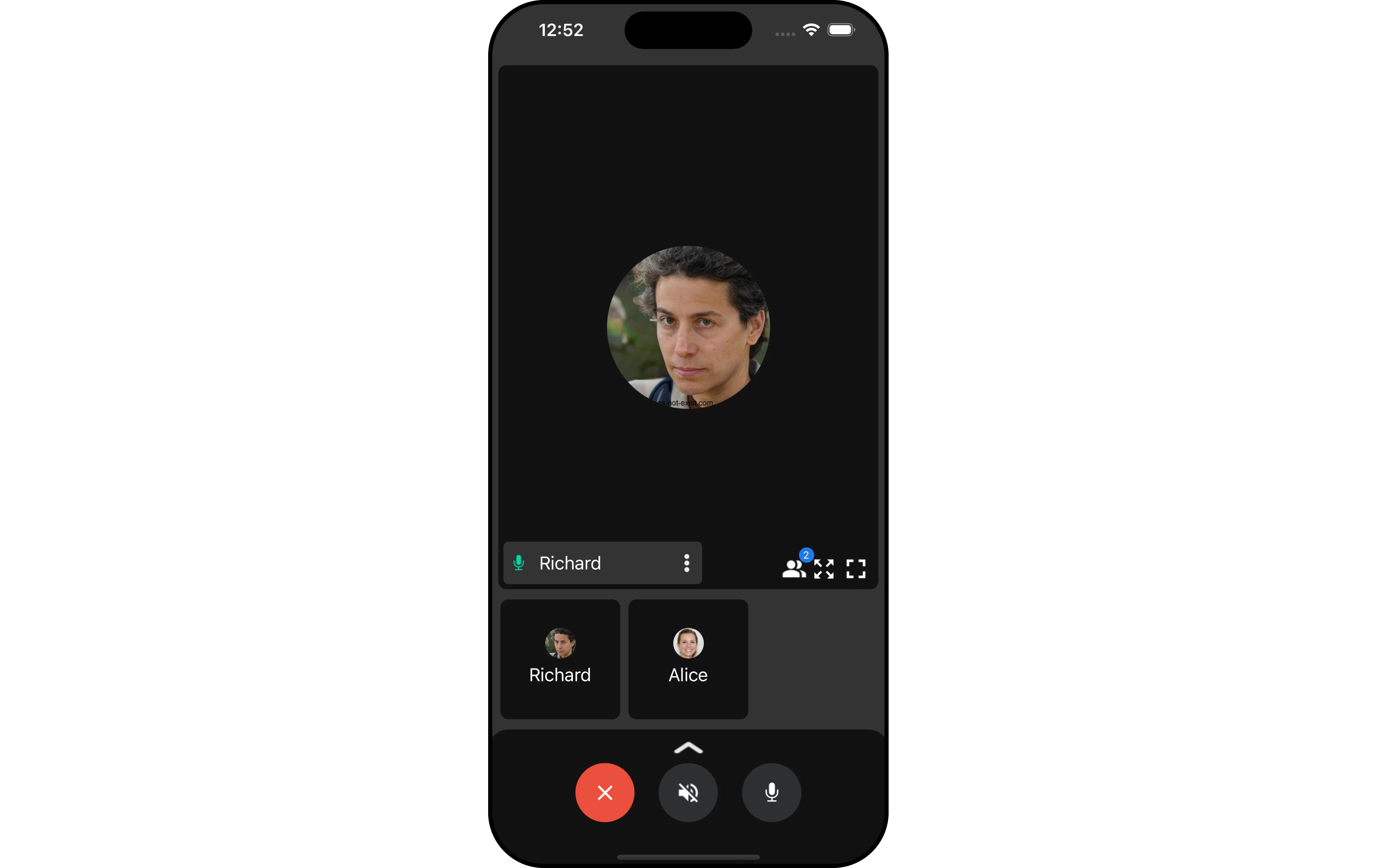 setShowSwitchToVideoCallShow or hide the switch to video call button.setShowSwitchToVideoCall(Bool)