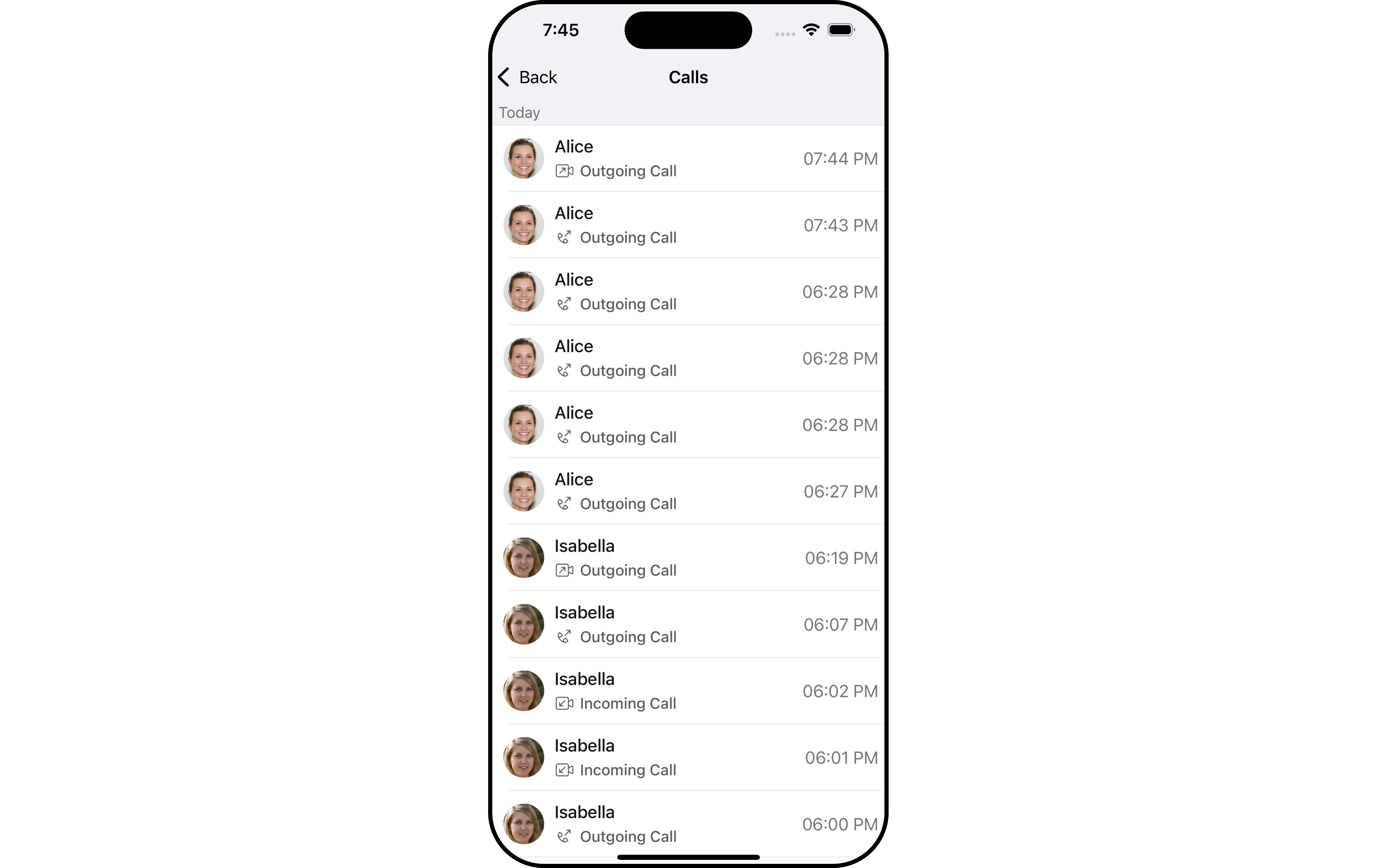 Call Logs component provides you with the records call events such as who called who, the time of the call, and the duration of the call. This information can be fetched from the CometChat server and displayed in a structured format for users to view their past call activities.