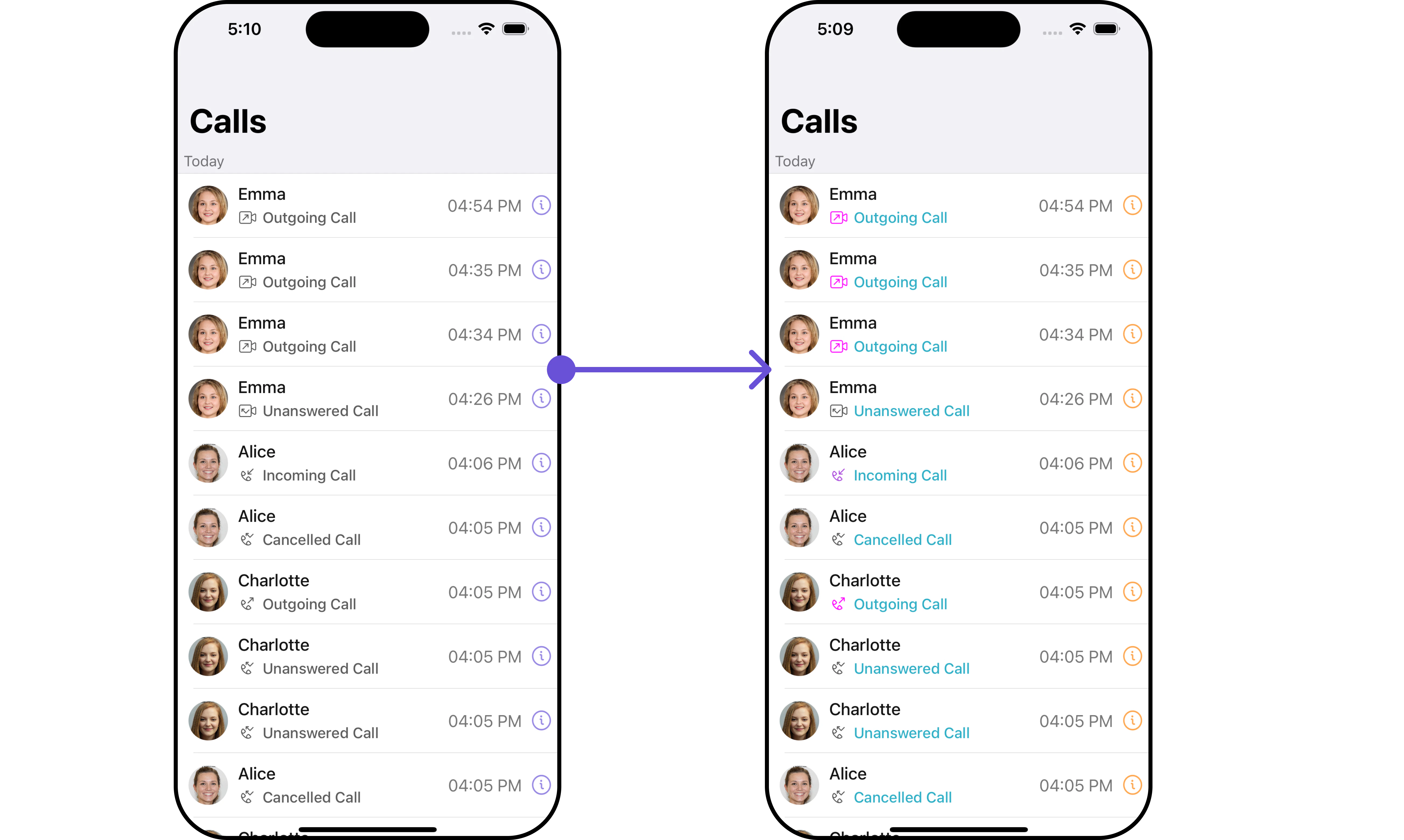 | missedCallIconTint | Sets the missed call icon tint | .set(missedCallIconTint: UIColor) |