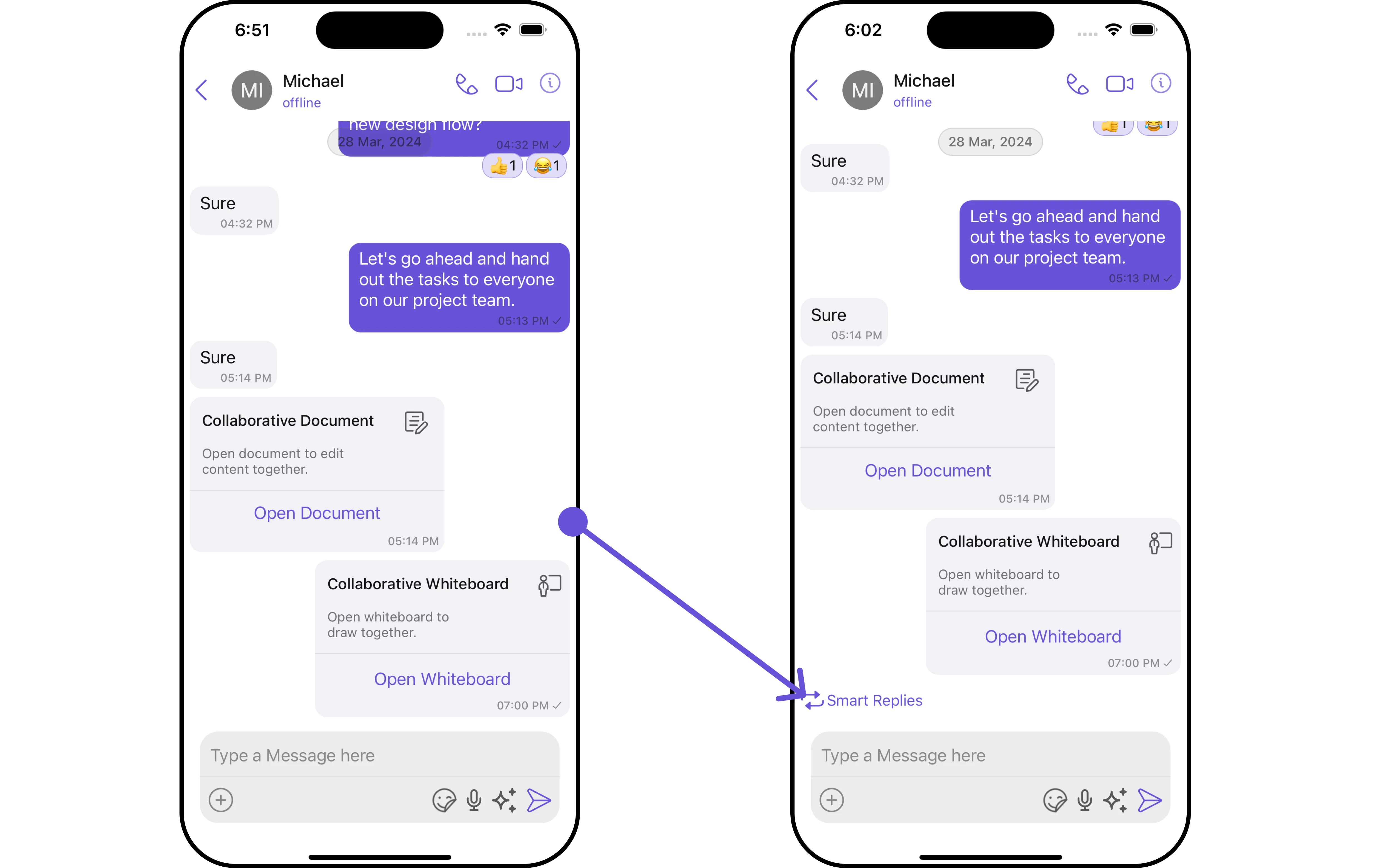 cometChatMessages. If a navigation controller is already in use, utilize the pushViewController function instead of directly presenting the view controller.FooterView