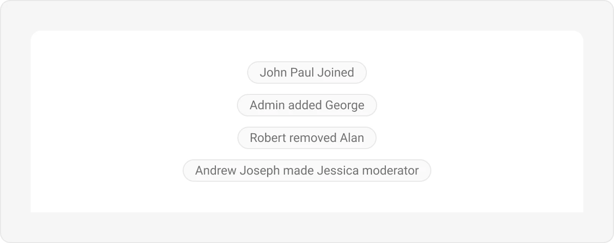 Meet call bubbles display call-related actions and statuses in the chat interface. Default