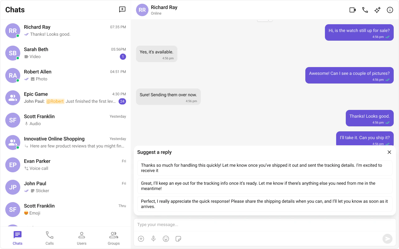 AI featuresConversation Starter, Smart Replies, Conversation Summary