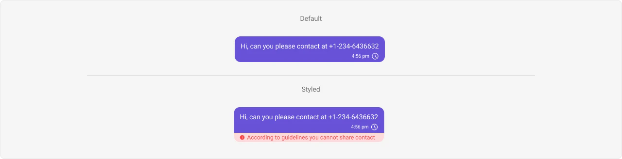 bottomView | Link previews, “load more” | (message: CometChat.BaseMessage, alignment: MessageBubbleAlignment) => JSX.Element | null |