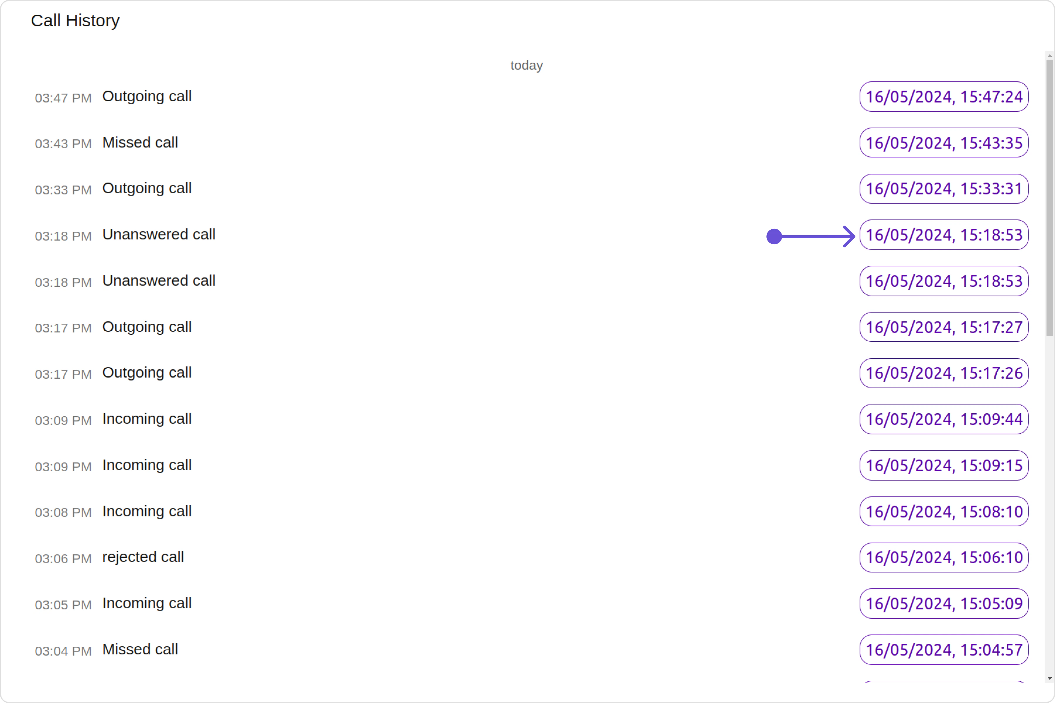 In this example, we are employing the callLogHistoryStyle.