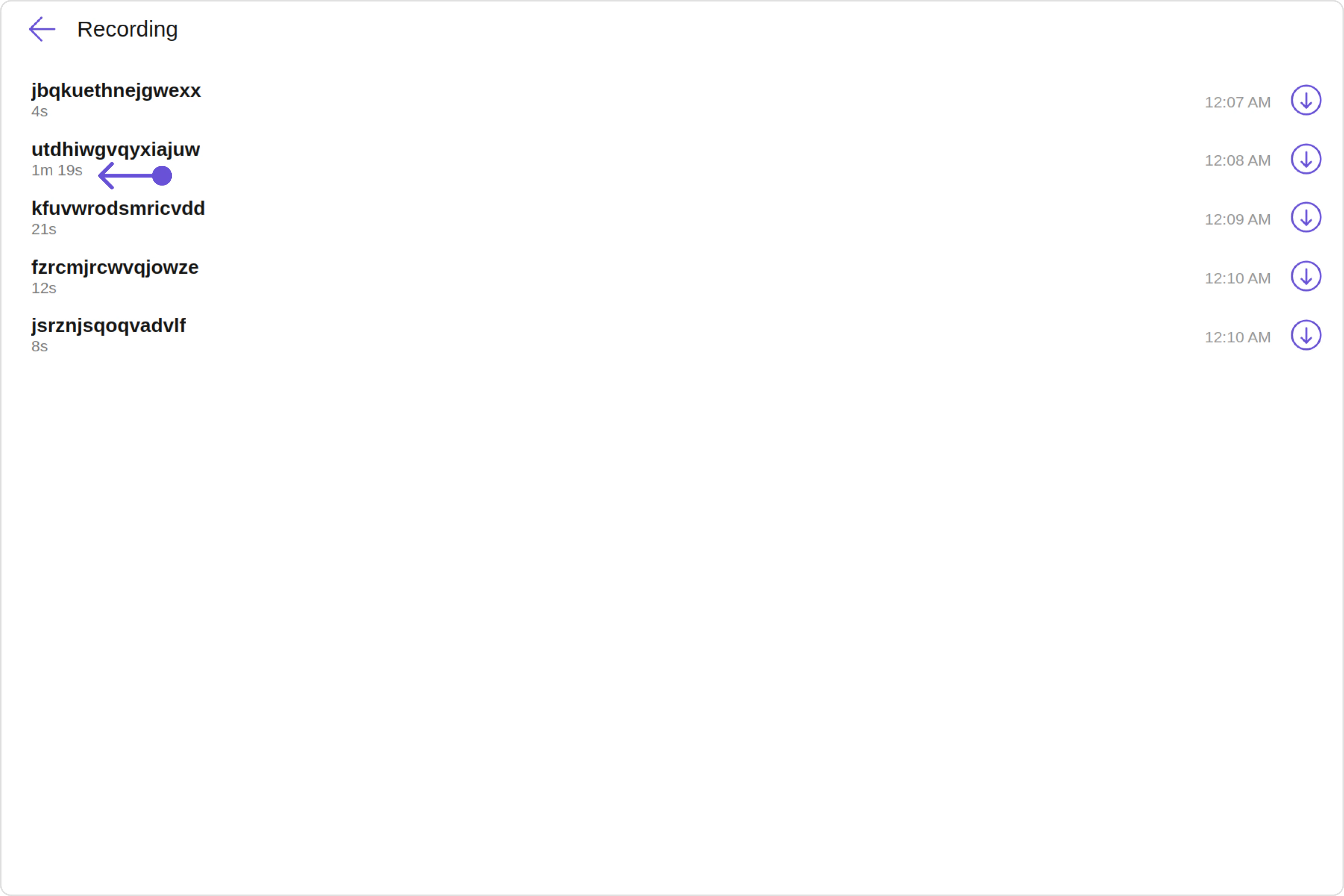 TheCometChatCallLogRecordings is a Component that shows a paginated list of recordings of a particular call. This allows the user to see all the recordings along with the duration as well as a download link using which one can download the recording.
