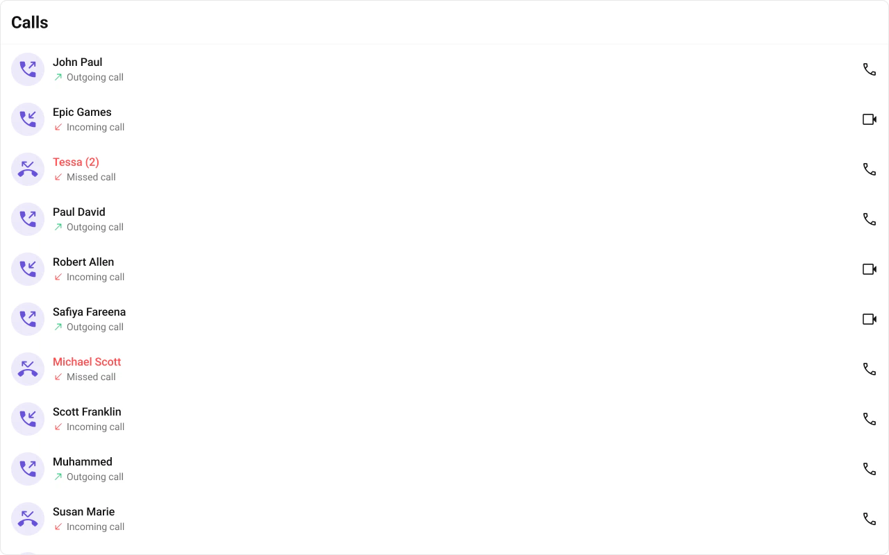 You can customize the trailing view for each call logs item to meet your requirements. Shown below is the default chat interface.
